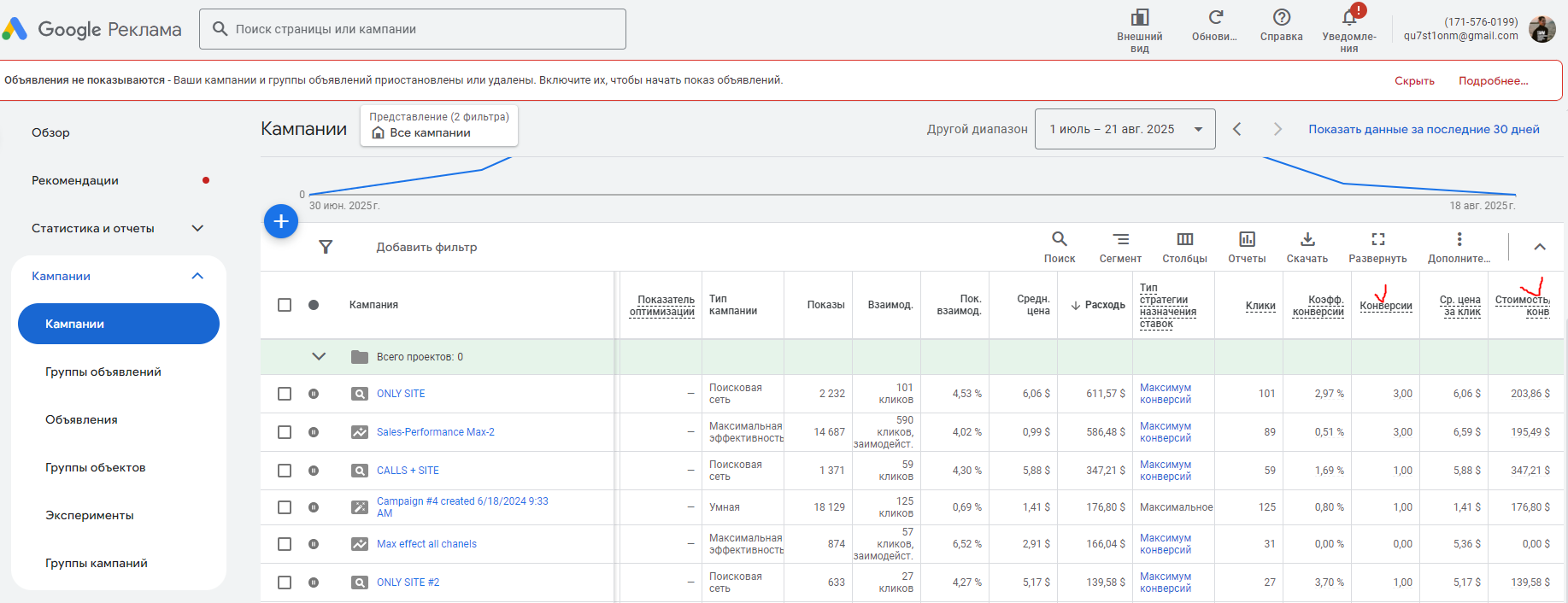 С клиентской стороны на сайте возникли проблемы с пикселем и регистрацией конверсии, в силу чего часть из них не отобразилась в разделах кампаний, а какие-то были зафиксированы по высокой стоимости (по факту могло пройти 12 лидов, а зарегистрированы 1 или 2)