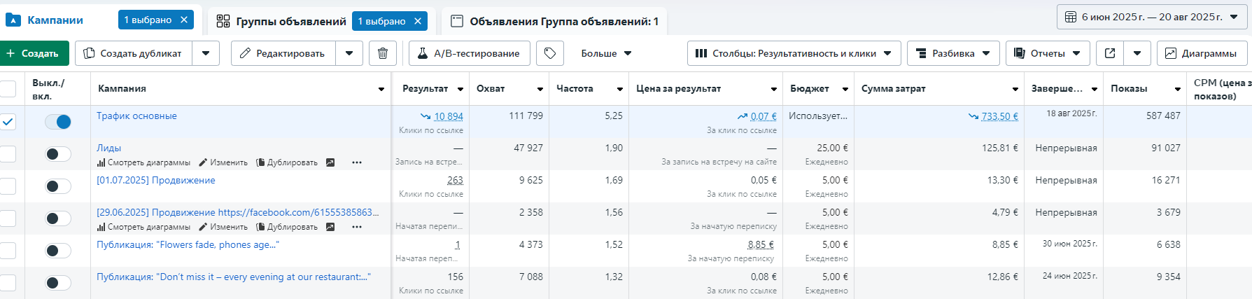 — Рекламные показатели представлены на скриншотах из персональных кабинетов